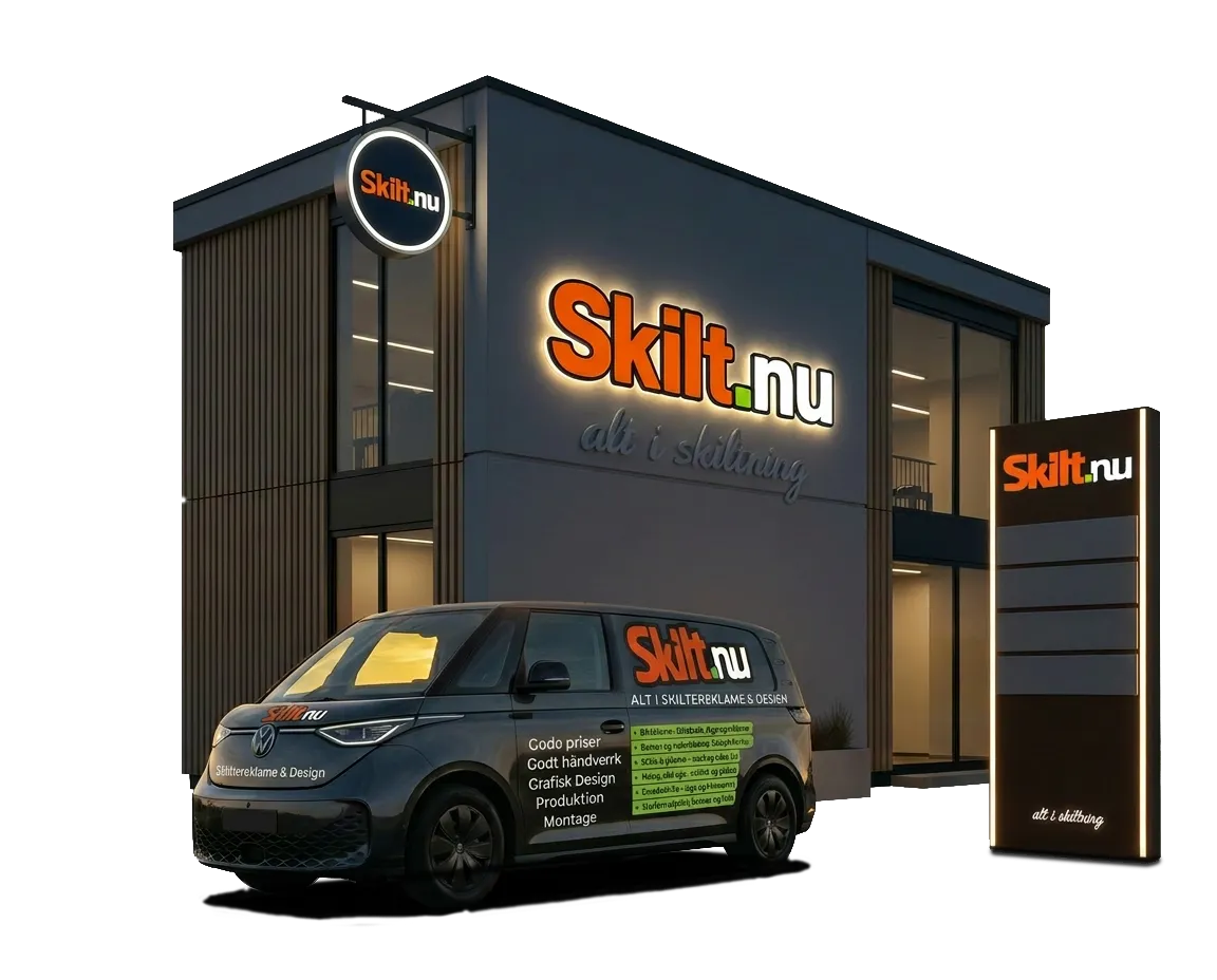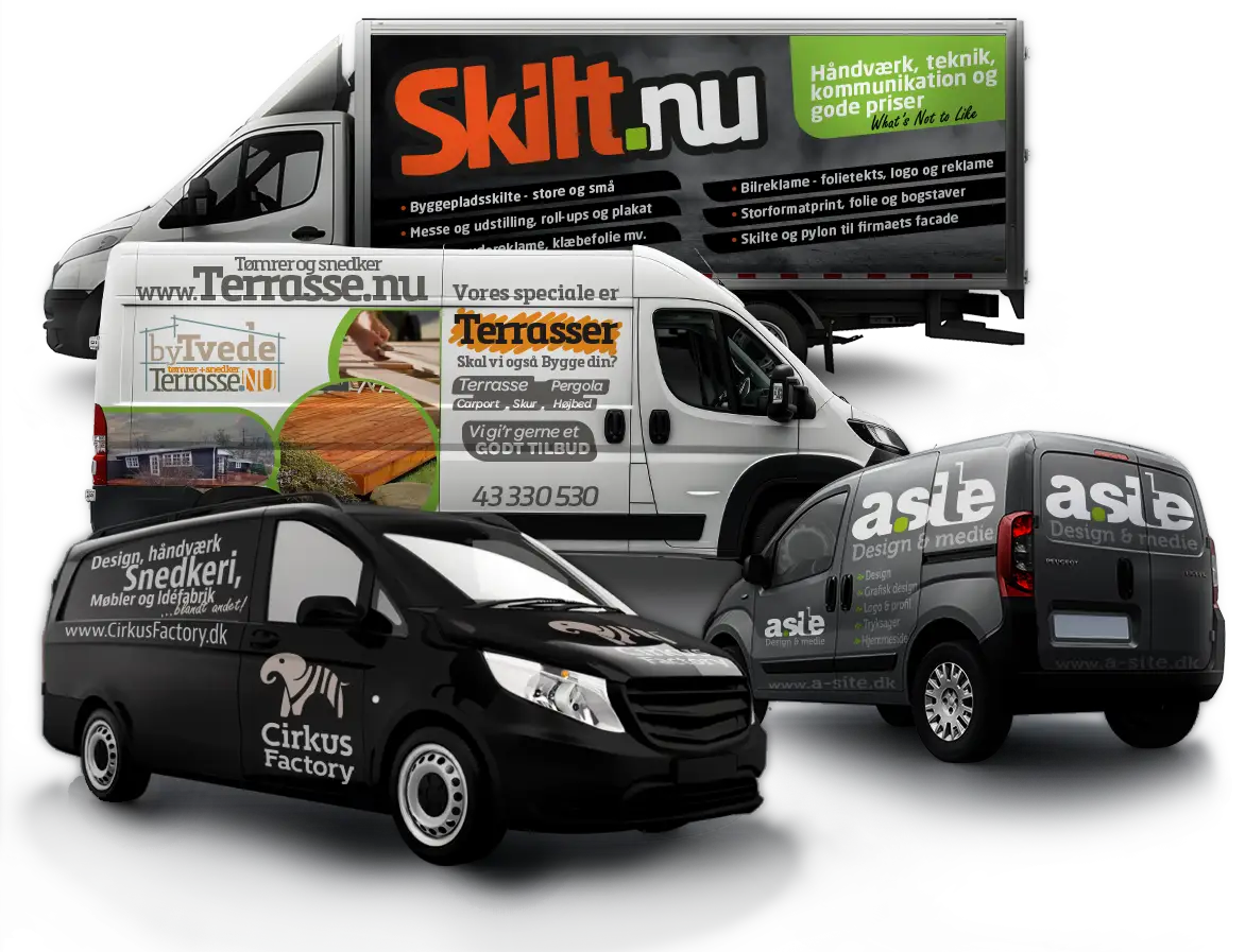 Ja da – vi laver alt fra små dørskilte, enkeltbiler til større helhedsløsninger for virksomheder og domiciler.